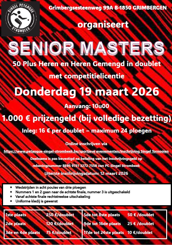 Nieuw is ook de inschrijvingsprocedure: voor de MASTERS 2026 kan UITSLUITEND ONLINE worden ingeschreven via onze website: